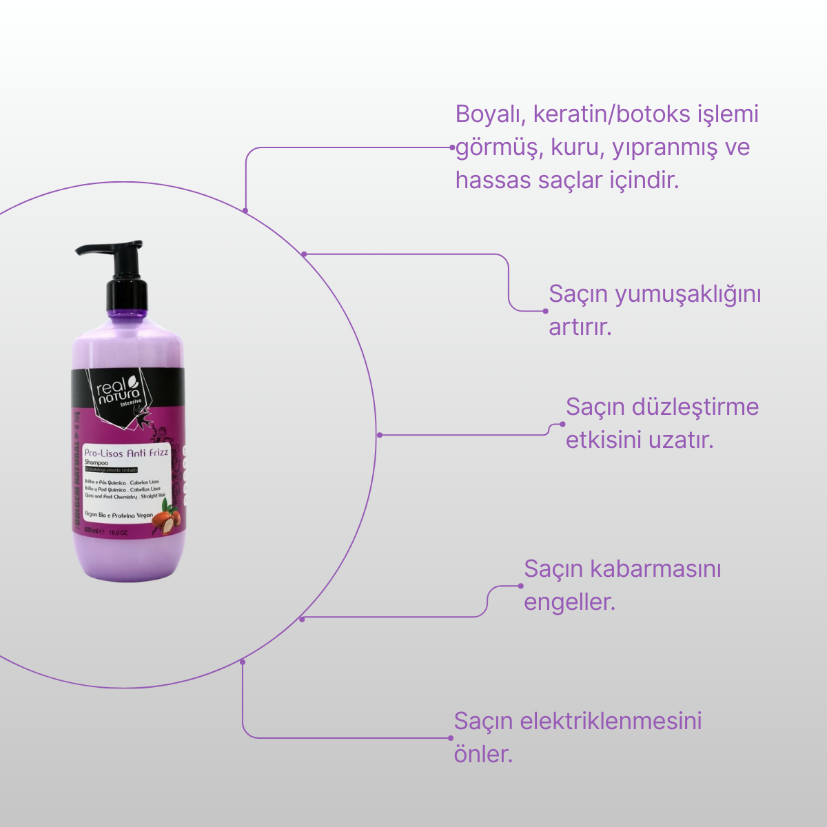 “REAL NATURA SHAMPOO PRO LISO ANTI FRIZZ ARGAN 500ml” için yorum yapan ilk kişi siz olun